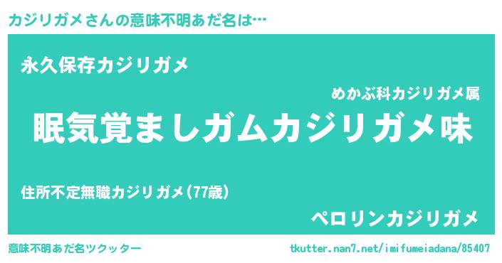 | ヒーロー風カッコイイあだ名 | 『正義の使者カジリガメ』『仮面カジダー』 |