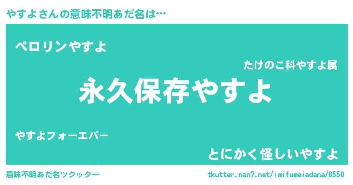 | 男性向けラノベタイトル風あだ名 | 『やすよという概念が存在しない退屈な世界 』 |
