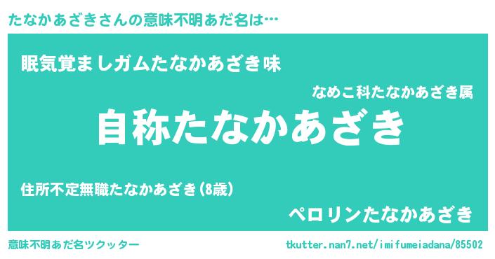| 女子向けラノベタイトル風あだ名 | 『たなかあざきなんてお断りですっ。』 |