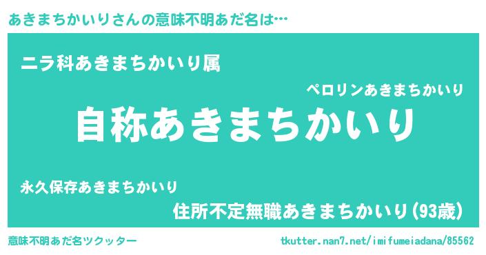 | 男性向けラノベタイトル風あだ名 | 『Re:あきまちかいりから始める異世界生活』 |