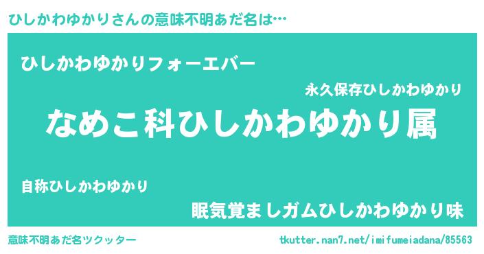 | 男性向けラノベタイトル風あだ名 | 『転生したらひしかわゆかりだった件』 |