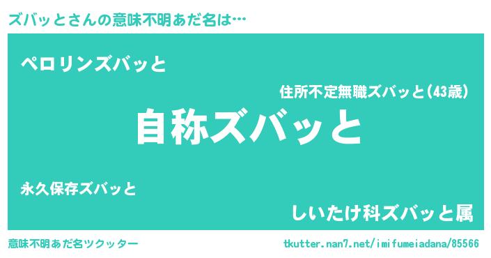 | ポケモン風あだ名 | 『ズバセウス』『ズバゴンZ』 |
