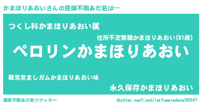 | 胡散臭い通販商品みたいなあだ名 | 『必ず成功するブレスレット…その名も「かまほりあおい」』 |