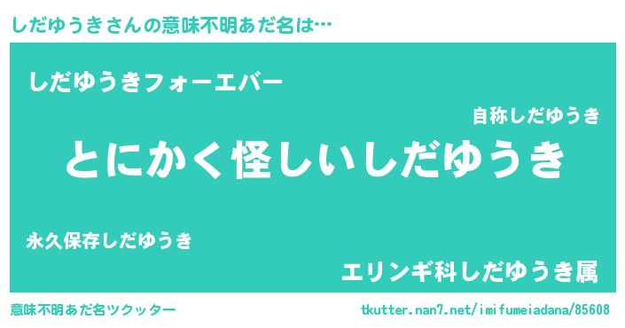 | 胡散臭い通販商品みたいなあだ名 | 『信頼と実績のサプリメント…その名も「しだゆうき」』 |