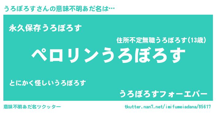 | ヘコむあだ名 | 『うろもー』『うろぼろす(爆)』 |
