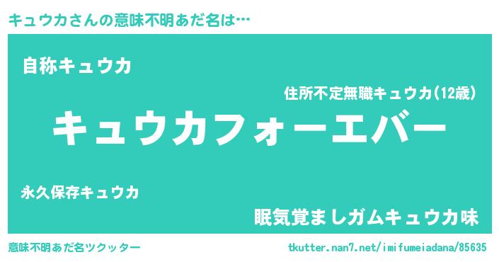 | 肩書あだ名 | 『キュウカ総理大臣』『キュウカ閣下』 |