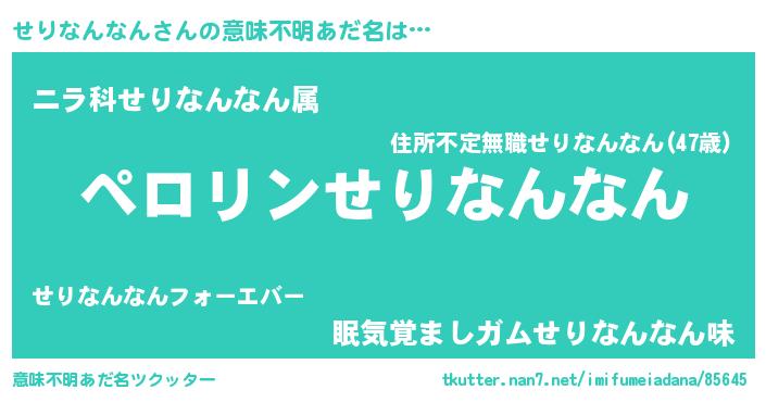 | 胡散臭い通販商品みたいなあだ名 | 『モテモテ間違いなし霊験あらたかなお札…その名も「せりなんなん」』 |