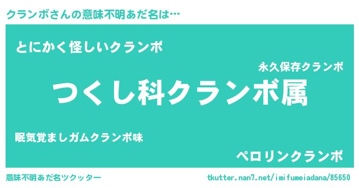 | 女子向けラノベタイトル風あだ名 | 『クランボの玉の輿計画!』 |