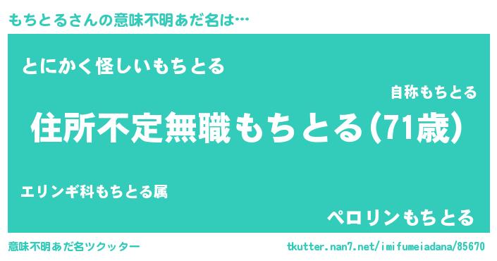 | 男性向けラノベタイトル風あだ名 | 『魔弾の王ともちとる』『もちとるの憂鬱』 |