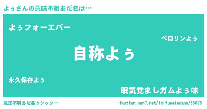 | ファンタジー風あだ名 | 『ゼヨゥトゥ』『エターナルヨゥー』 |