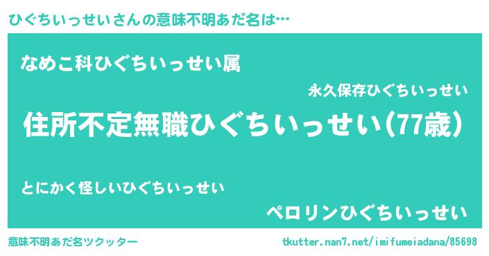 | 男性向けラノベタイトル風あだ名 | 『魔弾の王とひぐちいっせい』 |