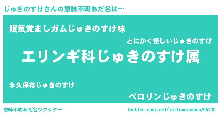 | 男性向けラノベタイトル風あだ名 | 『ジュキノスケスレイヤー』 |