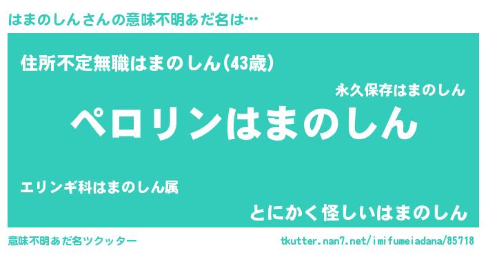 | 欧米人風あだ名 | 『はまのしん・ステッグマイヤー』 |