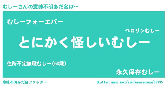 | 女子向けラノベタイトル風あだ名 | 『むしーの卵を拾いまして』 |