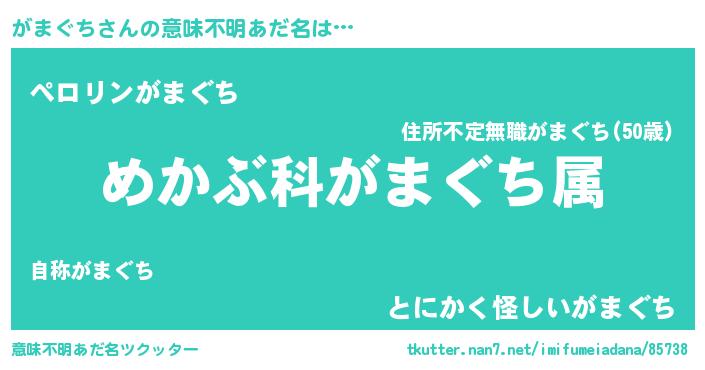 | 男性向けラノベタイトル風あだ名 | 『ガマグチスレイヤー』『緋弾のガマグチ』 |