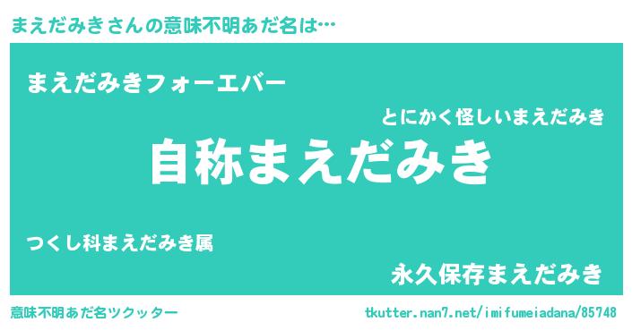 | 肩書あだ名 | 『まえだみき閣下』『まえだみき国家主席』 |