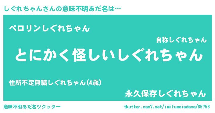 | ポケモン風あだ名 | 『ヒシグレチャン』『シグチュウ』 |