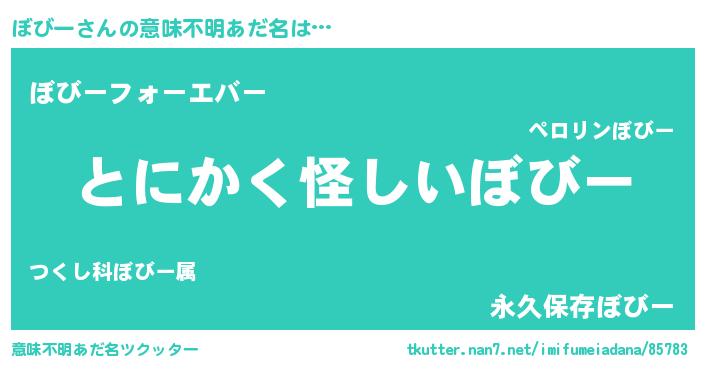 | 男性向けラノベタイトル風あだ名 | 『ダンジョンにぼびーを求めるのは間違っているだろうか』 |