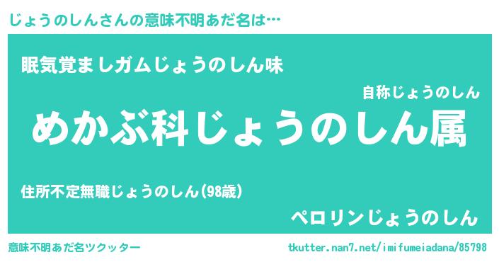 | 男性向けラノベタイトル風あだ名 | 『ジョウノシンスレイヤー』 |