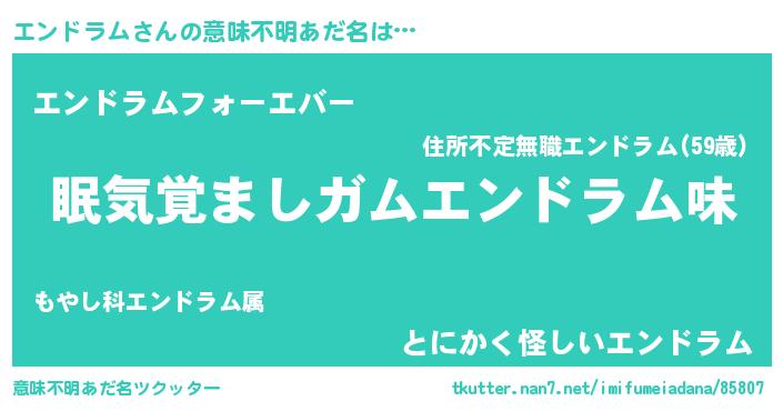 | ヒーロー風カッコイイあだ名 | 『天空の使者エンドラム』『黄金騎士エン』 |