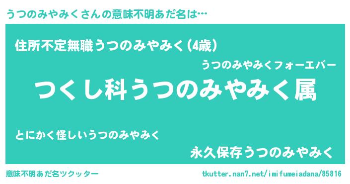 | 肩書あだ名 | 『うつのみやみく上級大将』 |