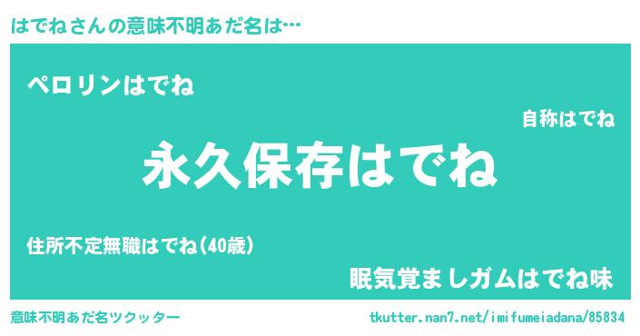 | 胡散臭い通販商品みたいなあだ名 | 『絶対に幸福をもたらす健康食品…その名も「はでね」』 |