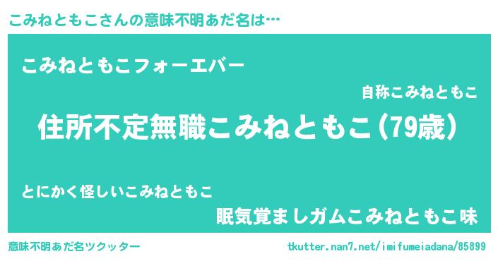 | 男性向けラノベタイトル風あだ名 | 『この素晴らしい世界にこみねともこを!』 |