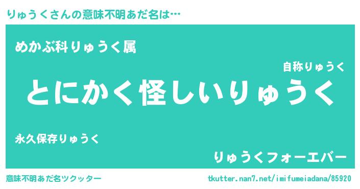 | ヒーロー風カッコイイあだ名 | 『銀牙騎士リュ』『ウルトラりゅうくマン』 |