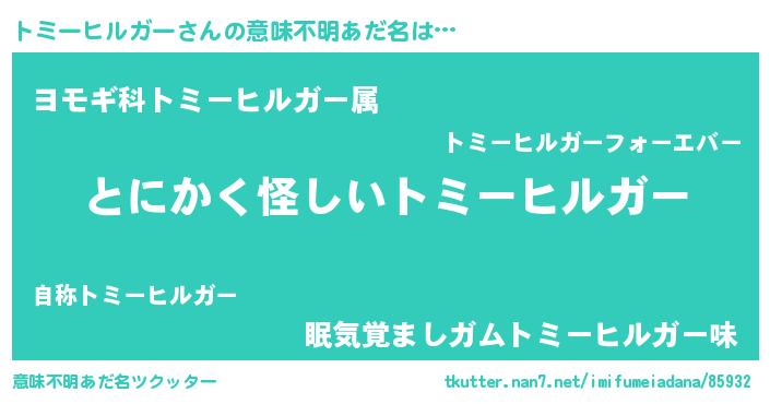 | 欧米人風あだ名 | 『ウサイントミーヒルガー』 |