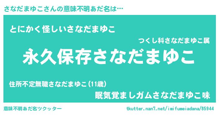 | ヘコむあだ名 | 『さなだまゆこ(震え声)』『さなお』 |
