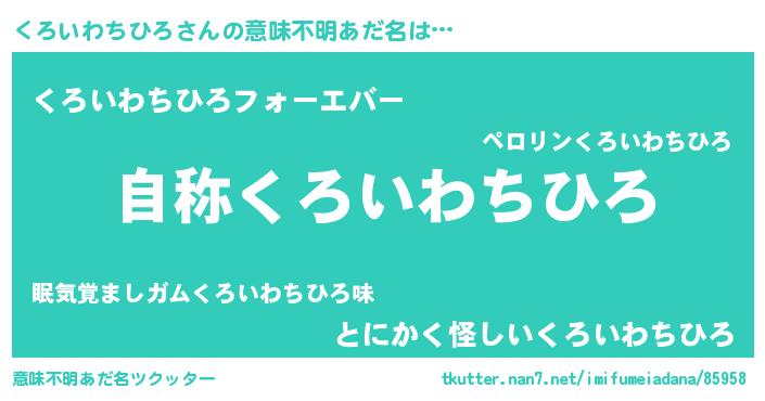 | 男性向けラノベタイトル風あだ名 | 『Re:くろいわちひろから始める異世界生活』 |