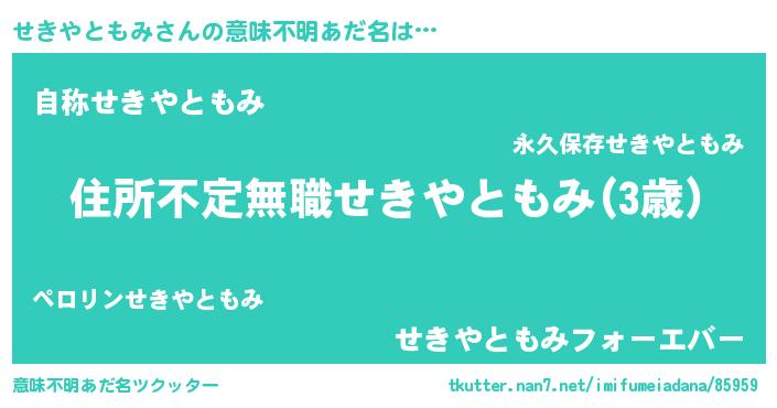 | 欧米人風あだ名 | 『せきやともみ・ステッグマイヤー』 |