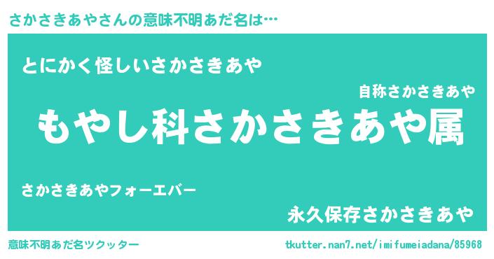 | ヘコむあだ名 | 『さかっちょ』『さかさきあや(震え声)』 |