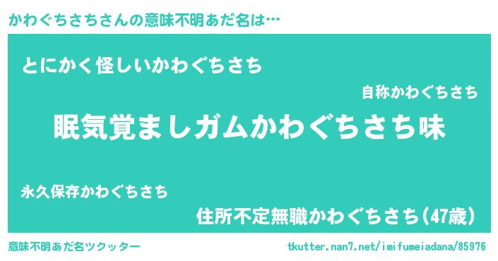 | 胡散臭い通販商品みたいなあだ名 | 『100人中100人が認めたイリジウム磁石…その名も「かわぐちさち」』 |