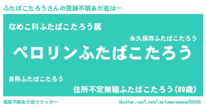 | 胡散臭い通販商品みたいなあだ名 | 『億万長者になれる霊験あらたかなお札…その名も「ふたばこたろう」』 |