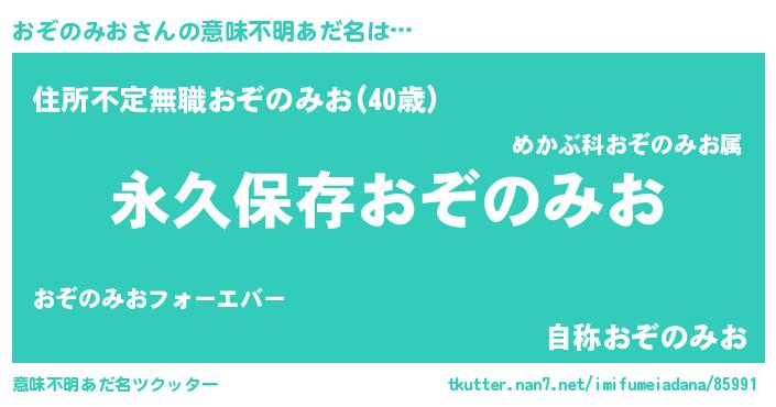 | 胡散臭い通販商品みたいなあだ名 | 『来世でも幸せになれる水素水…その名も「おぞのみお」』 |