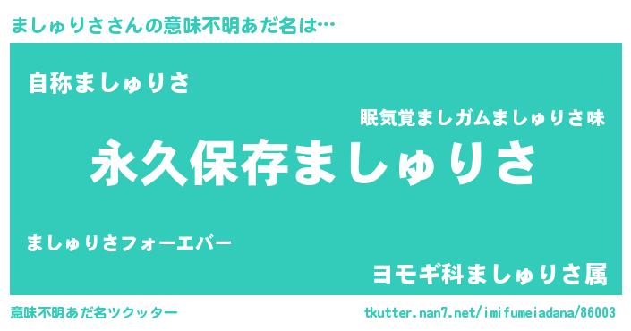 | ヘコむあだ名 | 『ましゅりさ(笑)』『つくし』 |