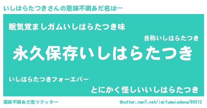 | 胡散臭い通販商品みたいなあだ名 | 『前代未聞の健康食品…その名も「いしはらたつき」』 |