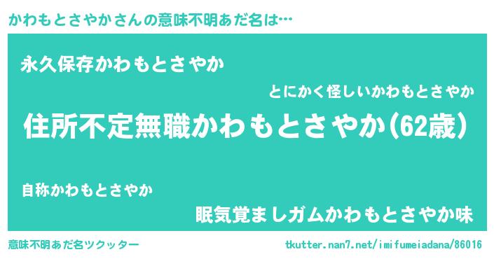 | 伝説のあだ名 | 『古文書に記された暗殺者かわもとさやか』 |