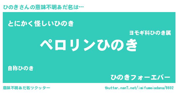 | 男性向けラノベタイトル風あだ名 | 『ヒノキアートオンライン』 |