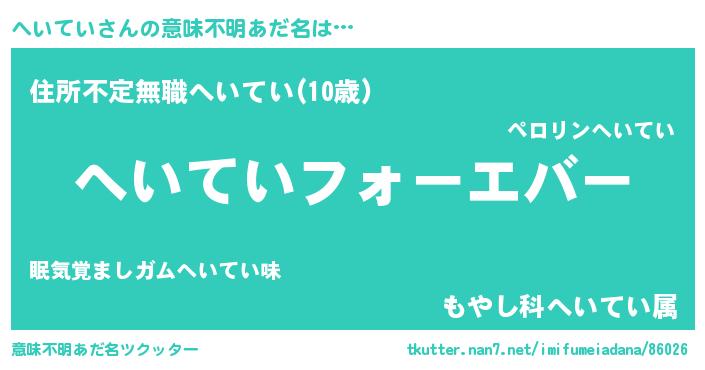 | ヘコむあだ名 | 『豆乳』『へいふぇ~』『へいっぺ』 |