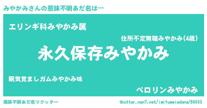| ヘコむあだ名 | 『みやかみ(小並感)』『みやふぇ~』 |