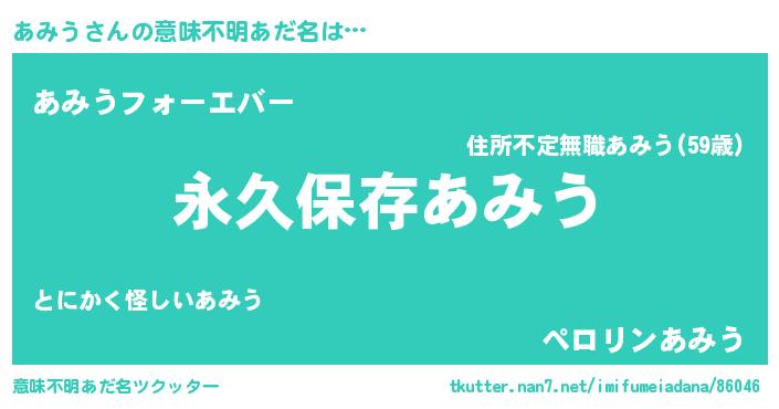 | 胡散臭い通販商品みたいなあだ名 | 『絶対に幸福をもたらす水素水…その名も「あみう」』 |
