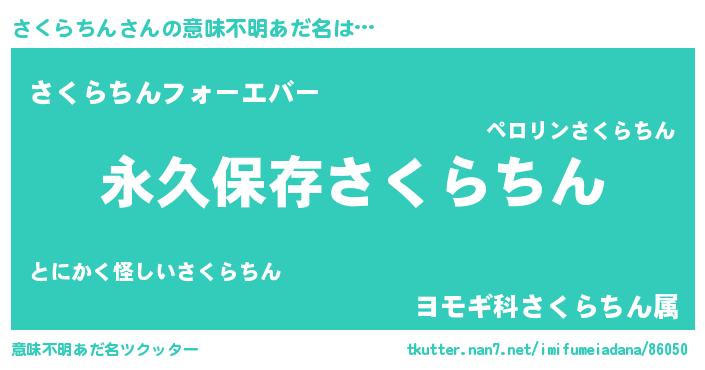 | 男性向けラノベタイトル風あだ名 | 『さくらちんという概念が存在しない退屈な世界 』 |