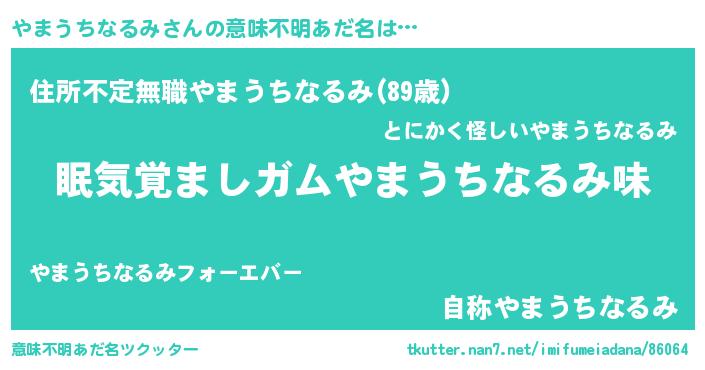 | 男性向けラノベタイトル風あだ名 | 『おまえをオタクにしてやるから、俺をやまうちなるみにしてくれ! 』 |