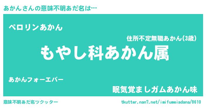 | ヘコむあだ名 | 『あかにー』『なまこ酢』『あかっぺ』 |