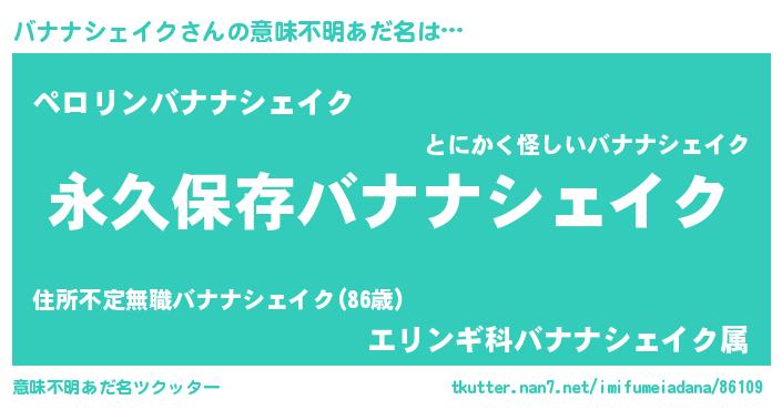 | ヘコむあだ名 | 『バナナシェイク(小並感)』『バナにゅー』 |