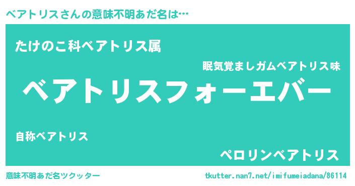 | 男性向けラノベタイトル風あだ名 | 『うちのベアトリスが世界を掌握している!』 |