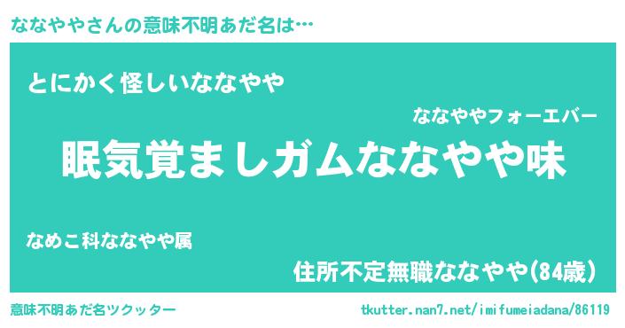 | ヒーロー風カッコイイあだ名 | 『慈愛の使者ななやや』『幻影騎士ナナ』 |