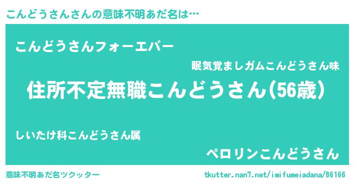 | 男性向けラノベタイトル風あだ名 | 『魔弾の王とこんどうさん』 |